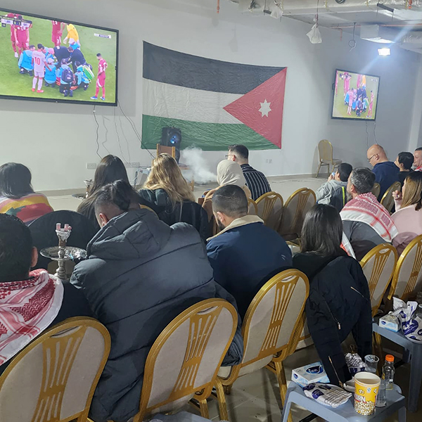 ولقد لاقت الفعالية نجاحًا باهرًا حيث اجتمع موظفو الشركة من مختلف الدوائر مع عائلاتهم لدعم المنتخب الأردني والاستمتاع بمجريات المباراة سويا، وقد ملأت الضحك والتشجيعات والشعور بالوحدة، حيث تبادل زملاء العمل الحماس والمزاح الودي طوال المباراة.